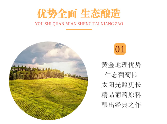 黃金地理優(yōu)勢(shì),生態(tài)葡萄園,太陽光照更長,精品葡萄原料,釀出經(jīng)典之作,高齡葡萄樹