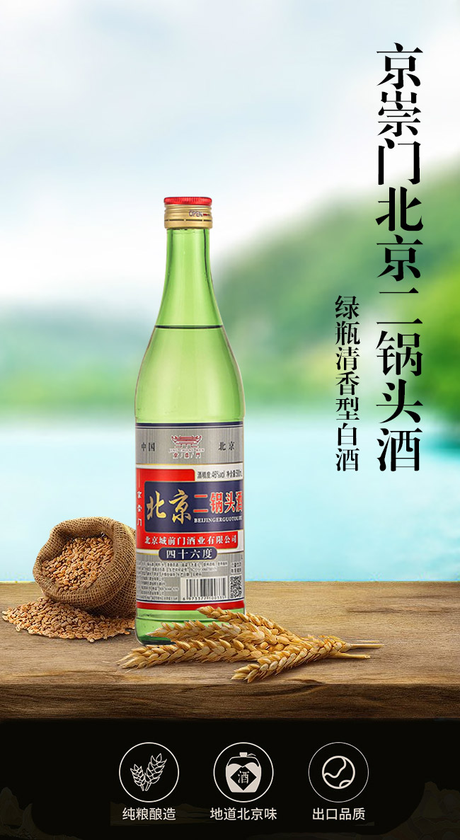 產品名:京崇門北京二鍋頭酒綠瓶清香型白酒【46°500ml】