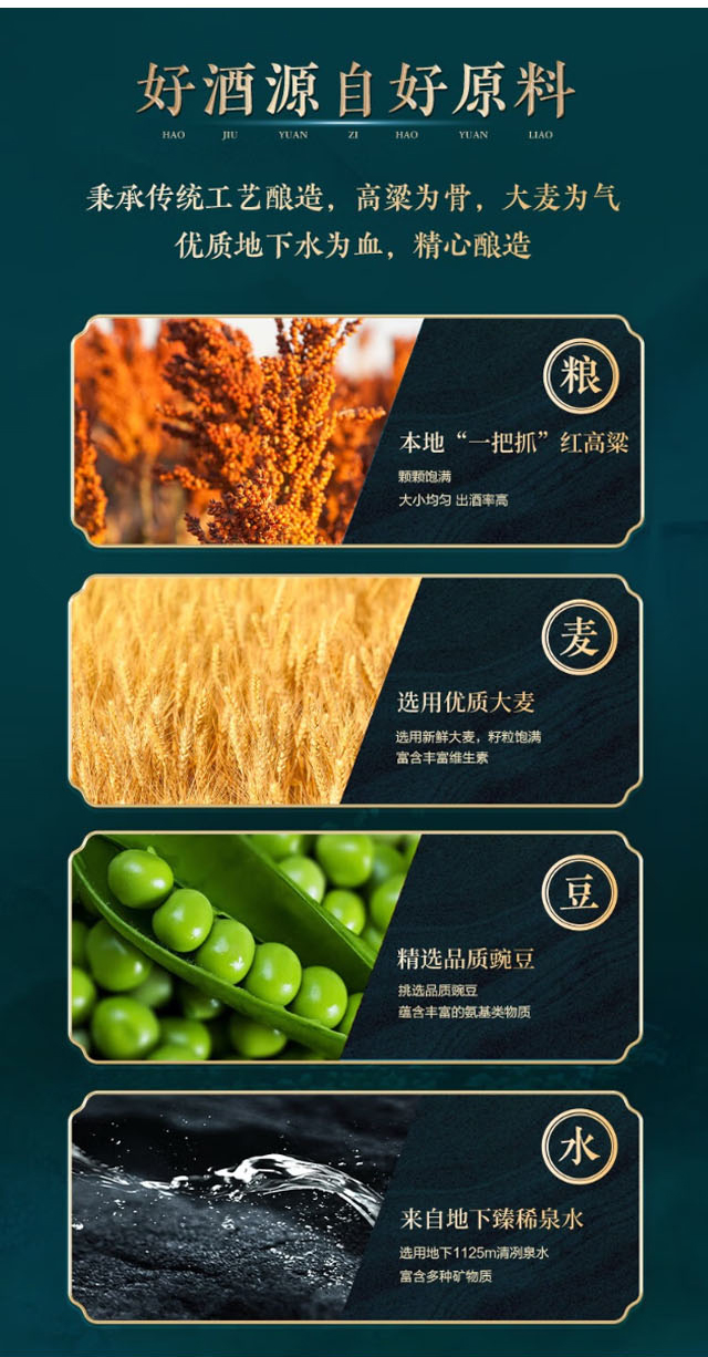 原料:水、高粱、大麥、豌豆等