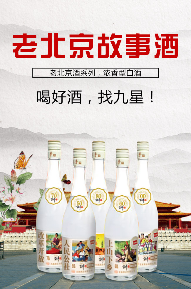 北京九星酒業(yè)有限公司是一家集產(chǎn)品研發(fā),生產(chǎn)銷售為一體的現(xiàn)代化白酒規(guī)模企業(yè)。目前開發(fā)的主要是皇城門系列白酒產(chǎn)品。是以優(yōu)質(zhì)高粱為主要原料,用大麥、小麥、豌豆制成大曲,輔多種微生物為糖化酵劑,再經(jīng)過長期發(fā)酵,緩慢蒸餾,取之精華,經(jīng)多年陳貯后,精心勾兌而成。以“清香幽雅,醇厚綿甜,尾昧爽凈”的獨特風(fēng)格,深受各界朋友的青睞。