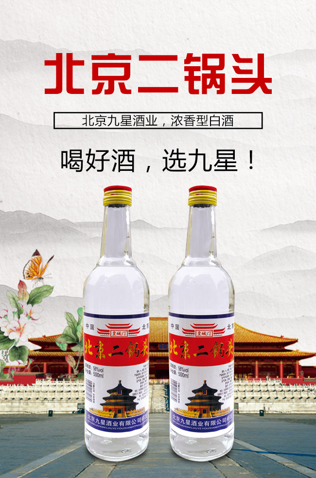 北京九星酒業(yè)有限公司是一家集產(chǎn)品研發(fā),生產(chǎn)銷售為一體的現(xiàn)代化白酒規(guī)模企業(yè)。目前開發(fā)的主要是皇城門系列白酒產(chǎn)品。是以優(yōu)質(zhì)高粱為主要原料,用大麥、小麥、豌豆制成大曲,輔多種微生物為糖化酵劑,再經(jīng)過長期發(fā)酵,緩慢蒸餾,取之精華,經(jīng)多年陳貯后,精心勾兌而成。以“清香幽雅,醇厚綿甜,尾昧爽凈”的獨特風格,深受各界朋友的青睞。
