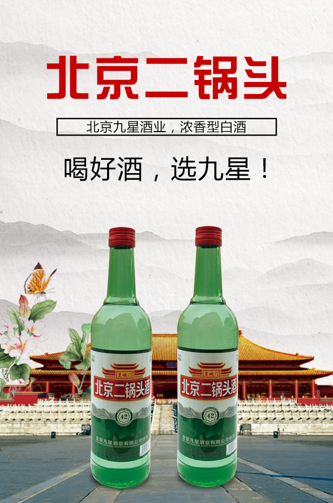 北京九星酒業(yè)有限公司是一家集產(chǎn)品研發(fā),生產(chǎn)銷售為一體的現(xiàn)代化白酒規(guī)模企業(yè)。目前開(kāi)發(fā)的主要是皇城門(mén)系列白酒產(chǎn)品。是以優(yōu)質(zhì)高粱為主要原料,用大麥、小麥、豌豆制成大曲,輔多種微生物為糖化酵劑,再經(jīng)過(guò)長(zhǎng)期發(fā)酵,緩慢蒸餾,取之精華,經(jīng)多年陳貯后,精心勾兌而成。以“清香幽雅,醇厚綿甜,尾昧爽凈”的獨(dú)特風(fēng)格,深受各界朋友的青睞。