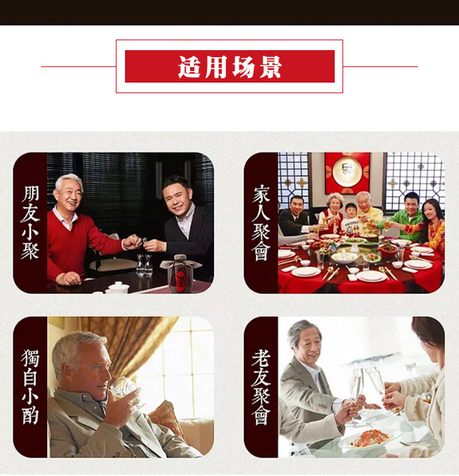 適飲場合:商務(wù)宴會(huì)、團(tuán)圓小酌、婚慶宴席、節(jié)日送禮、收藏