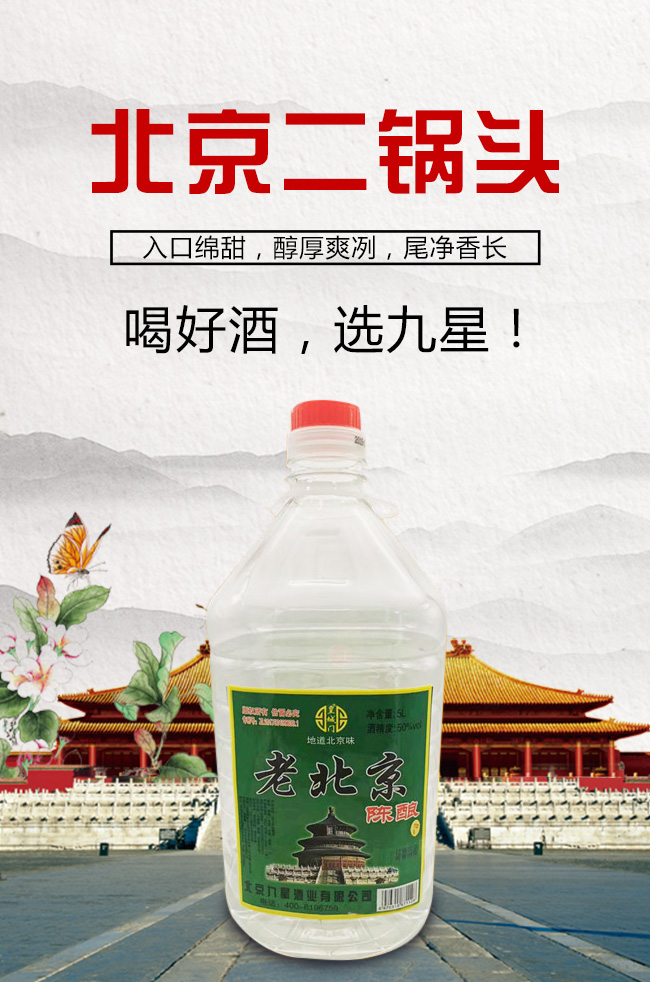 北京九星酒業(yè)有限公司是一家集產(chǎn)品研發(fā),生產(chǎn)銷售為一體的現(xiàn)代化白酒規(guī)模企業(yè)。目前開發(fā)的主要是皇城門系列白酒產(chǎn)品。是以優(yōu)質(zhì)高粱為主要原料,用大麥、小麥、豌豆制成大曲,輔多種微生物為糖化酵劑,再經(jīng)過長(zhǎng)期發(fā)酵,緩慢蒸餾,取之精華,經(jīng)多年陳貯后,精心勾兌而成。以“清香幽雅,醇厚綿甜,尾昧爽凈”的獨(dú)特風(fēng)格,深受各界朋友的青睞。