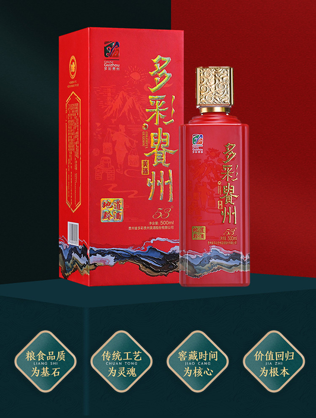 多彩貴州酒產(chǎn)于貴州茅臺鎮(zhèn),以本地優(yōu)質(zhì)糯高粱、小麥、水為原料,利用得天獨厚的自然微生物環(huán)境,遵循具有悠久歷史的傳統(tǒng)工藝精釀而成,并由大師級團隊精選、勾調(diào)、品評,認定;融合了“釀造、文化、品牌、自信”等多彩元素。