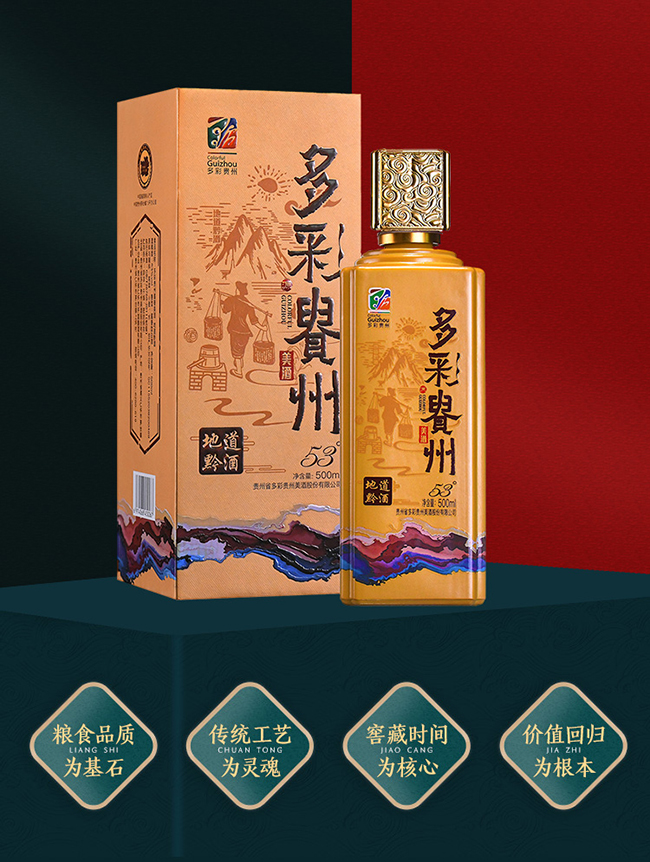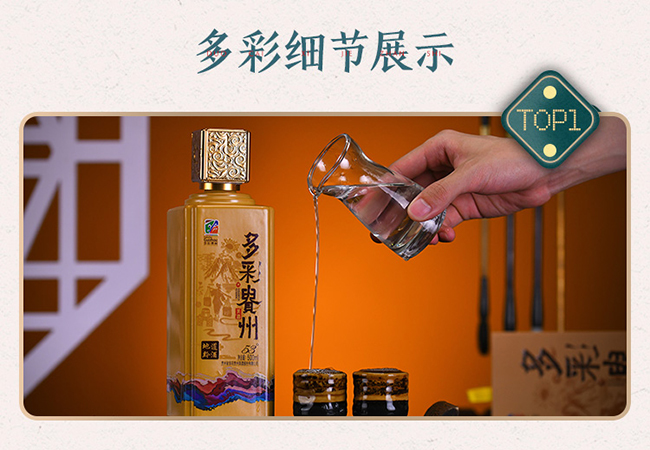 多彩貴州酒產(chǎn)于貴州茅臺(tái)鎮(zhèn),以本地優(yōu)質(zhì)糯高粱、小麥、水為原料,利用得天獨(dú)厚的自然微生物環(huán)境,遵循具有悠久歷史的傳統(tǒng)工藝精釀而成,并由大師級(jí)團(tuán)隊(duì)精選、勾調(diào)、品評(píng),認(rèn)定;融合了“釀造、文化、品牌、自信”等多彩元素。