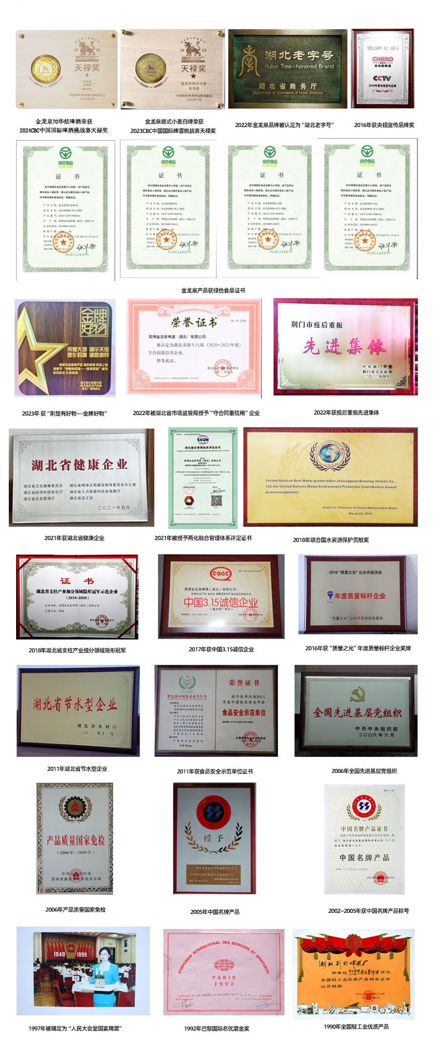 2016年,8度金龍泉純生金典08、9度金龍泉啤酒純生、金龍泉啤酒活力源、12.8度金龍泉啤酒1978經(jīng)我國(guó)綠色食品發(fā)展中心核準(zhǔn),獲“綠色食品”證書,金龍泉成為湖北啤酒行業(yè)較早獲“綠色食品”認(rèn)證的企業(yè)。2019年、2022年、2025年,金龍泉連續(xù)通過三年一度的綠色食品認(rèn)證,保持技術(shù)領(lǐng) 先和質(zhì)量?jī)?yōu)勢(shì)。