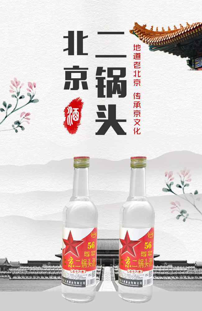 產(chǎn)品名:京仕尊北京二鍋頭紅星白瓶濃香型白酒【56度500ml】