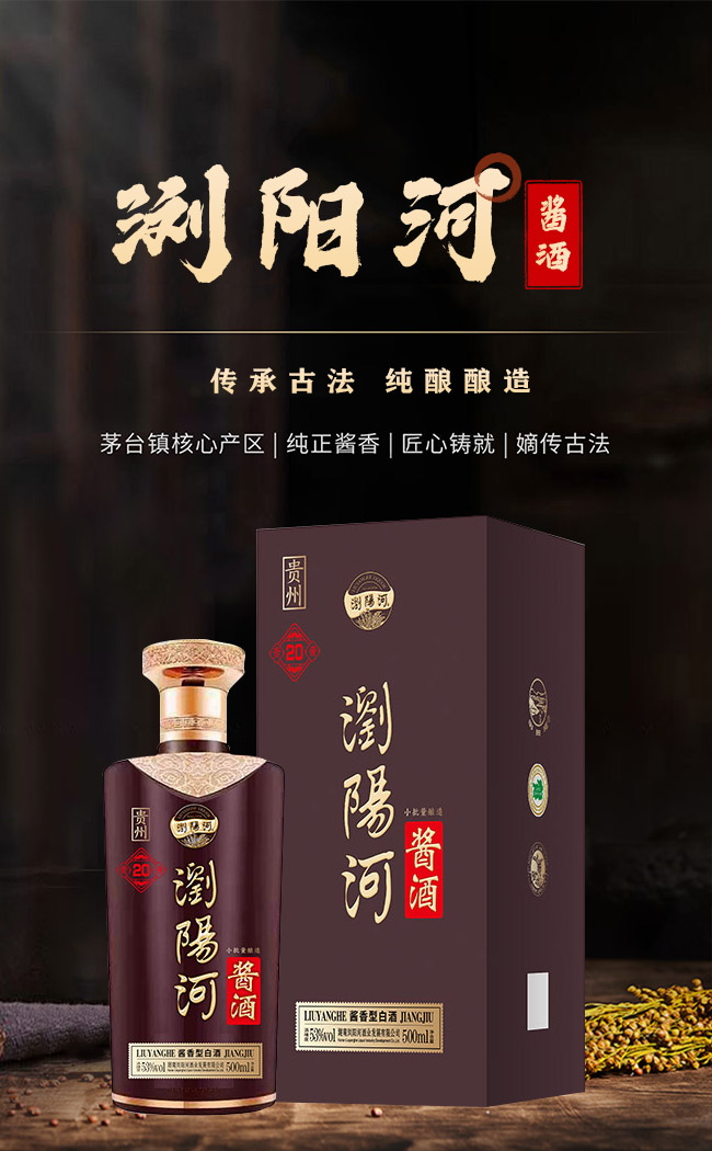 產(chǎn)品名:瀏陽(yáng)河醬酒貴醬20 醬香型白酒【53° 500ml】