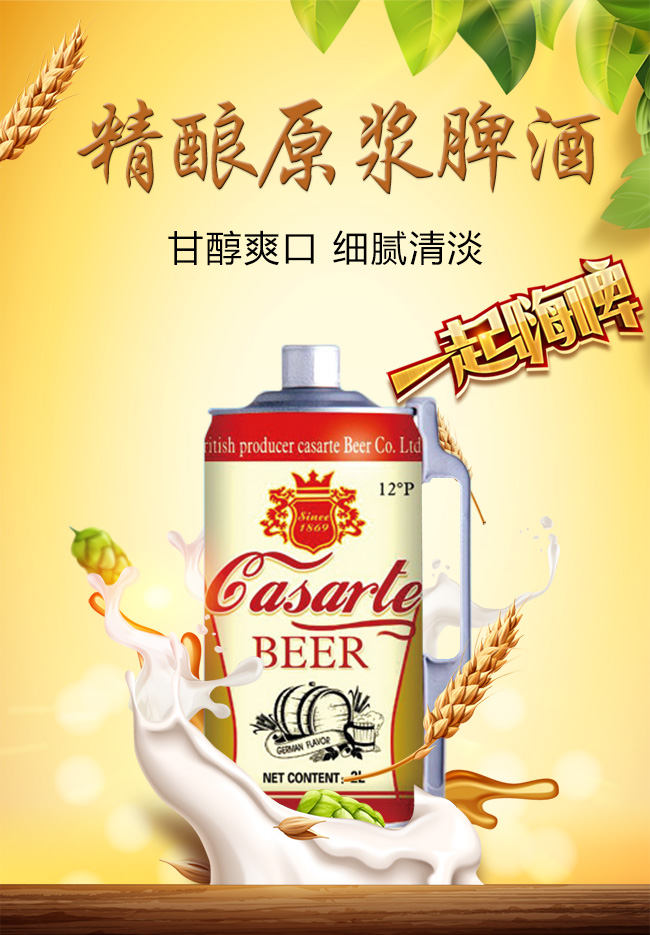 我公司精選優(yōu)級(jí)進(jìn)口麥芽、啤酒花、優(yōu)級(jí)大米、上等酵母,采用優(yōu)級(jí)純凈水,超低溫長(zhǎng)時(shí)間發(fā)酵,啤酒風(fēng)味保鮮技術(shù)密閉隔氧,全過(guò)程純凈化釀造,使酒液清澈透明,純凈自然,口味清爽,更加適合消費(fèi)者的消費(fèi)需求。合理的保持了啤酒的各種營(yíng)養(yǎng)成分,其色澤金黃透明,泡沫潔白細(xì)膩、掛杯持久、純爽柔和、麥香味濃郁。