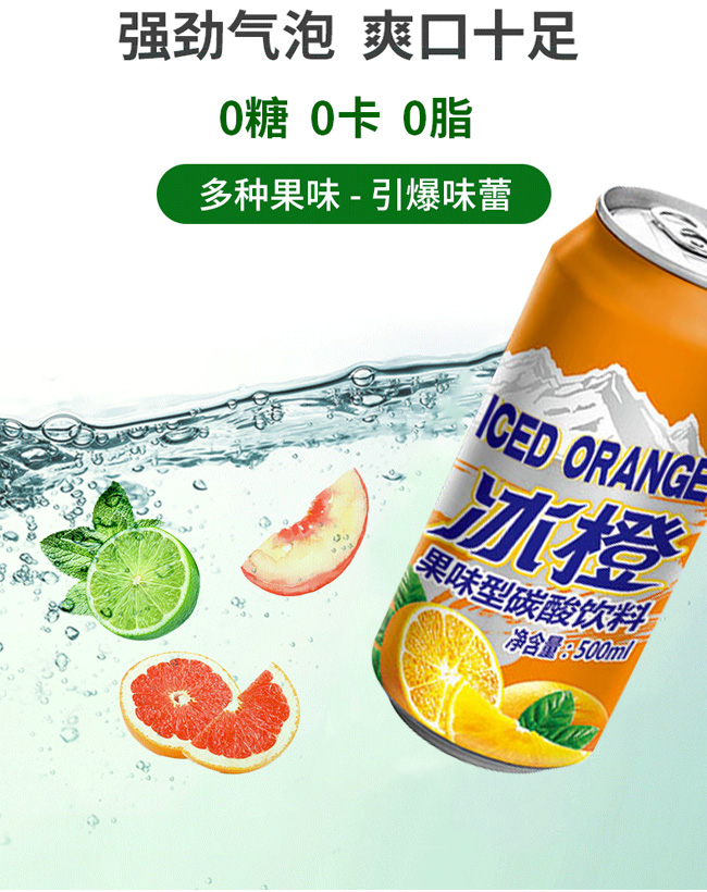 產(chǎn)品名:冰橙果味碳酸飲料【500ml】