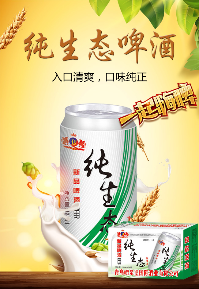 產(chǎn)品名:純生態(tài)啤酒【8°320ml×24罐】