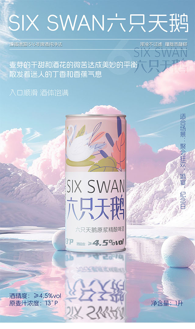 品名:六只天鵝原漿精釀啤酒【13°1L】