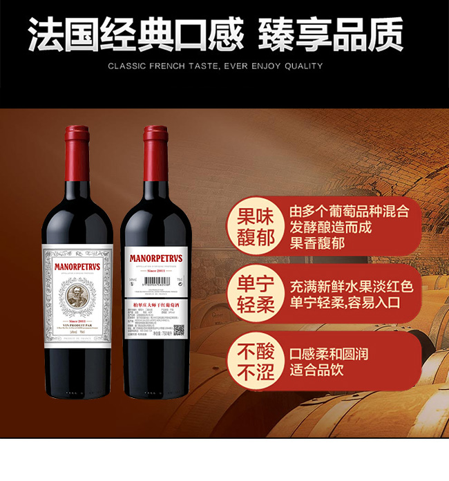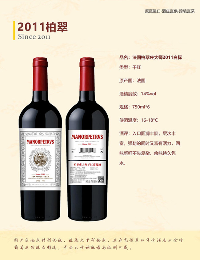 【產(chǎn)品名稱】法國(guó)柏翠莊大師干紅葡萄酒2011(白標(biāo))【14° 750ml】