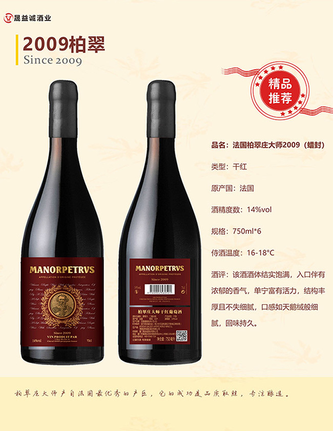品名:法國柏翠莊大師干紅葡萄酒2009(蠟封)【14° 750ml】