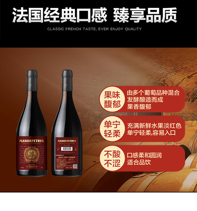酒評:該酒酒體結(jié)實飽滿,入口伴有濃郁的香氣,單寧富有活力,結(jié)構(gòu)豐厚且不失細膩,口感如天鵝絨般細膩,回味持久。