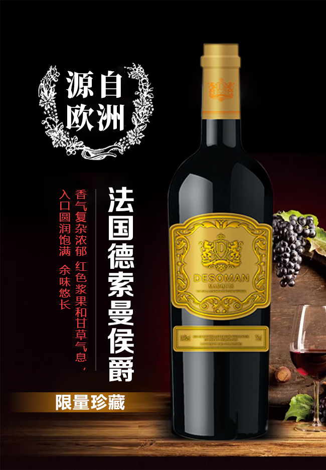 產(chǎn)品名:法國侯爵干紅葡萄酒【14.5度750ml】