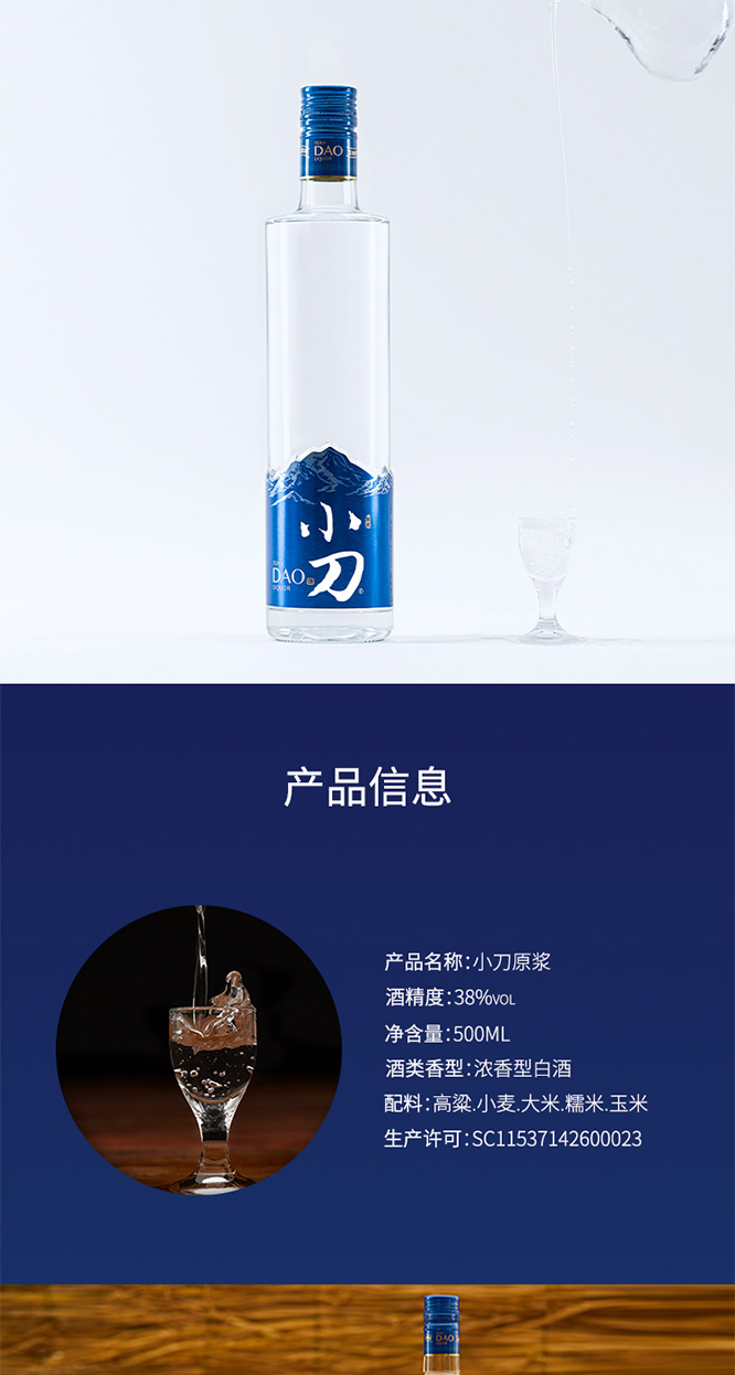產(chǎn)品名:小刀酒原漿38°500ml濃香型白酒