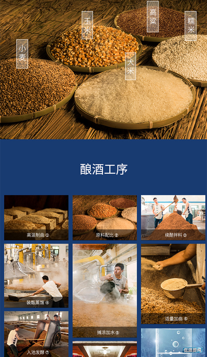 原料:水、高粱、大米、糯米、小麥、玉米等