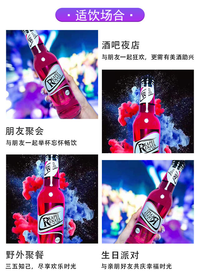 適飲場合:自斟自飲、家庭聚會(huì)、酒吧夜店、派對必備、燒烤擼串、野餐出游等