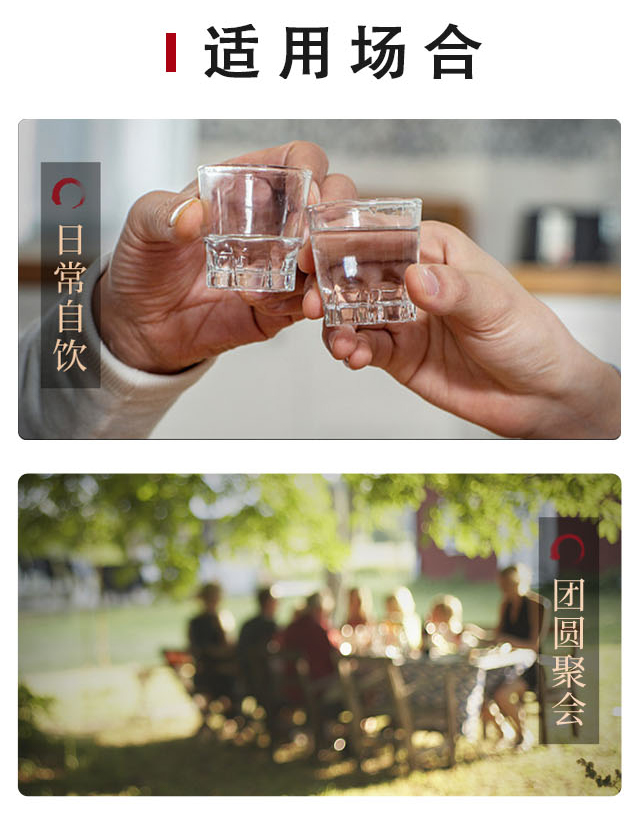 適飲場(chǎng)合:家庭聚會(huì)、自斟自飲、禮節(jié)拜訪、商務(wù)宴請(qǐng)、收藏等