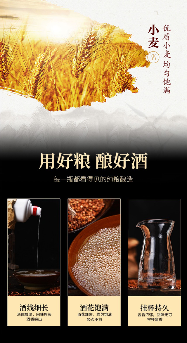 產(chǎn)品特點:酒味豐滿醇厚、幽雅細膩、回味悠久、空杯留香、香而不艷、低而不淡、醇香幽雅、不濃不猛、回味悠長