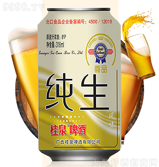 桂泉啤酒采用德國純種酵母、進(jìn)口澳大利亞麥芽、優(yōu)質(zhì)酒花、大米和澄碧湖天然飲用水,引進(jìn)先進(jìn)的釀造生產(chǎn)設(shè)備和生產(chǎn)工藝,精心釀制而成,成酒泡沫,潔白、細(xì)膩、 持久掛杯,入口有獨(dú)特的酒花香味,酒體爽而不淡,柔和適口,深受市場認(rèn)可。